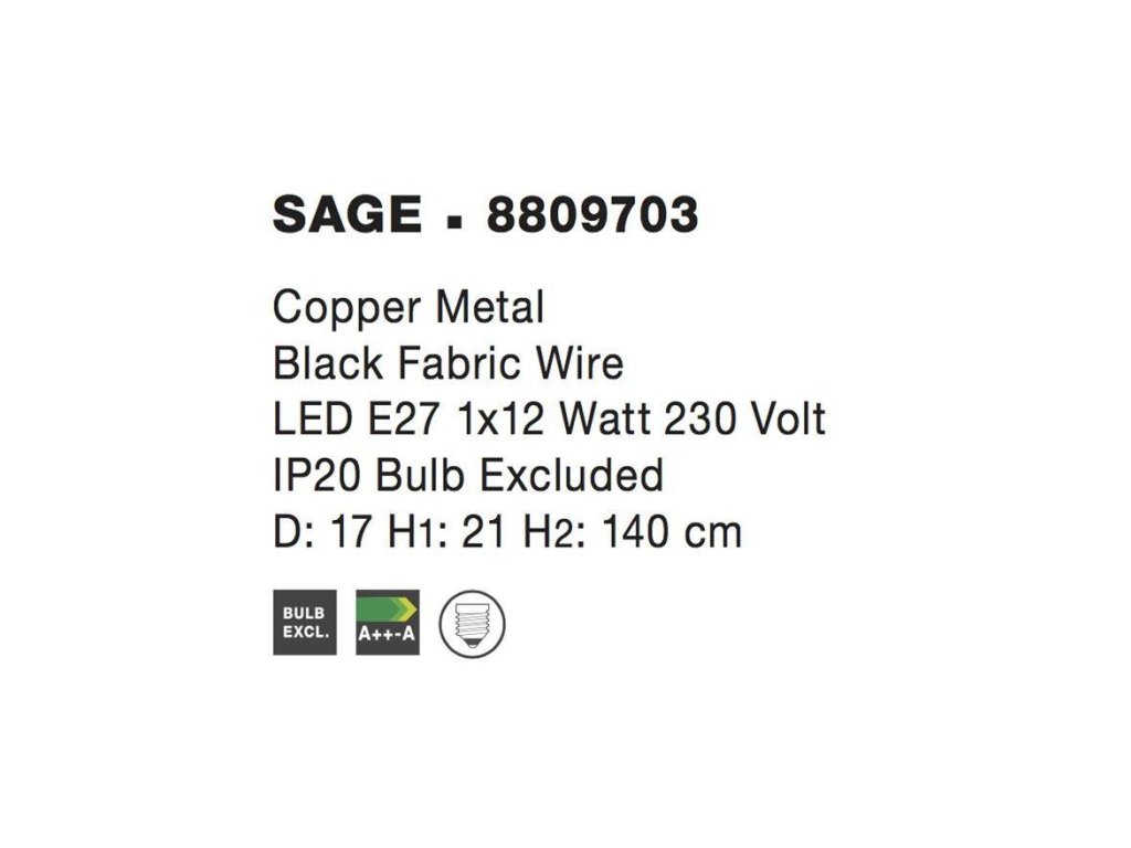 Závěsné svítidlo SAGE kov, růžová zlatá a černý kabel, E27 1x12W - NOVA LUCE