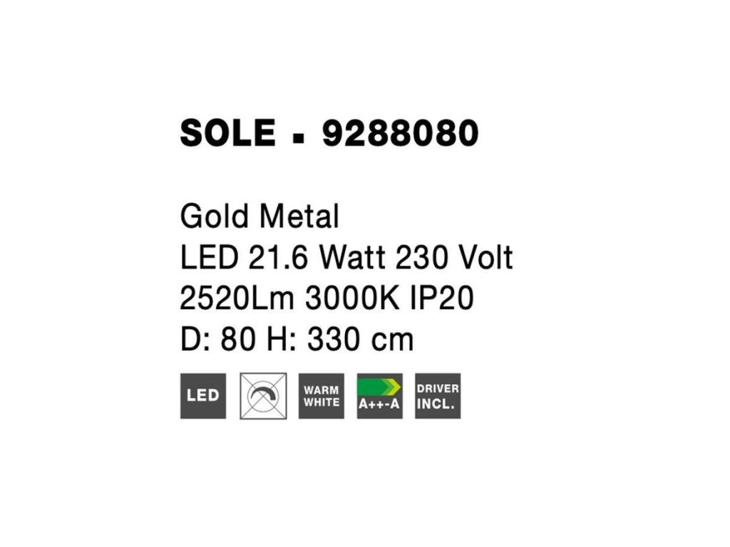 Závěsné svítidlo SOLE zlatý kov LED 21.6W 230V 3000K IP20 - NOVA LUCE