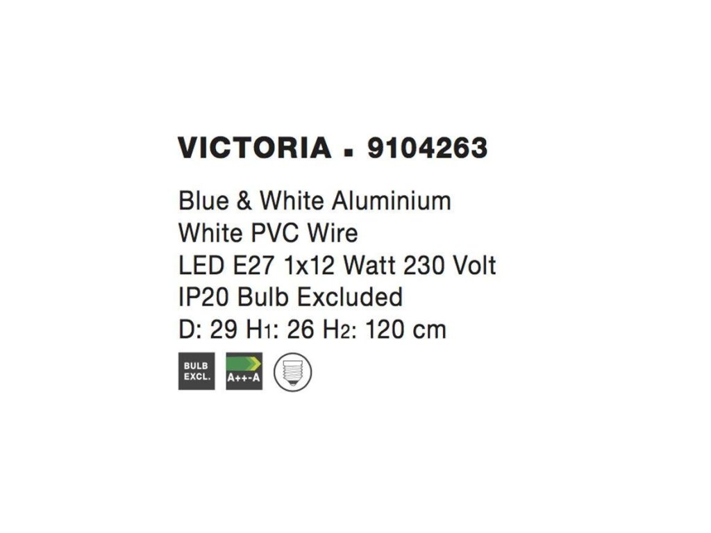 Závěsné svítidlo VICTORIA modrý a bílý hliník bílý PVC kabel E27 1x12W IP20 bez žárovky - NOVA LUCE
