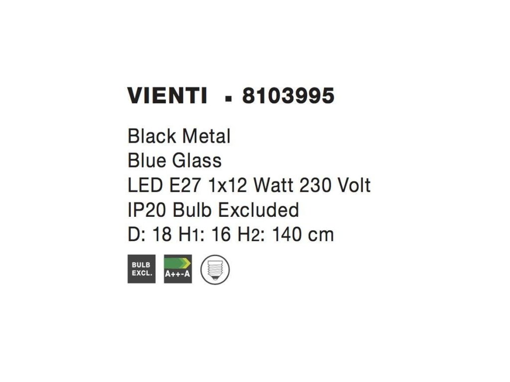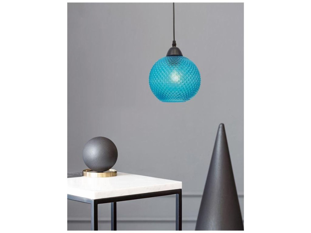 Závěsné svítidlo VIENTI modré sklo a černý kov E27 1x12W 230V IP20 bez žárovky - NOVA LUCE