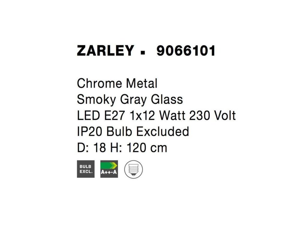 Závěsné svítidlo ZARLEY chromovaný kov kouřové šedé sklo E27 1x12W 230V IP20 bez žárovky - NOVA LUCE
