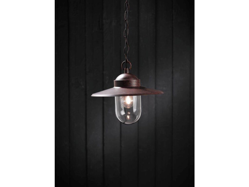 Venkovní svítidlo NORDLUX Luxembourg 72805009, vhodné k zavěšení do altánku nebo na terasu je tvořeno kulatou základnou a sklem s kulatou stříškou na řetězovém závěsu. Svítidlo je v moderní rezavé povrchové úpravě, vhodné ke kombinaci např. s tmavým dřevem. Pěkného efektu dosáhnete doplněním svítidla o retro žárovku Filament. Vybírat můžete i stmívatelnou žárovku.